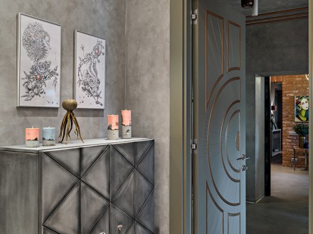 Нами были использованы материалы Ланорс в основных помещениях квартиры. Кухня-гостинная, одна из спален и с/у были выполнены известковой декоративной штукатуркой Travertine. Это фактурный материал с высокими прочностными характеристиками. Коридор и часть спален окрашена матовой краской краской Mons Interior. Цвета были выбраны по палитре "Времена года".